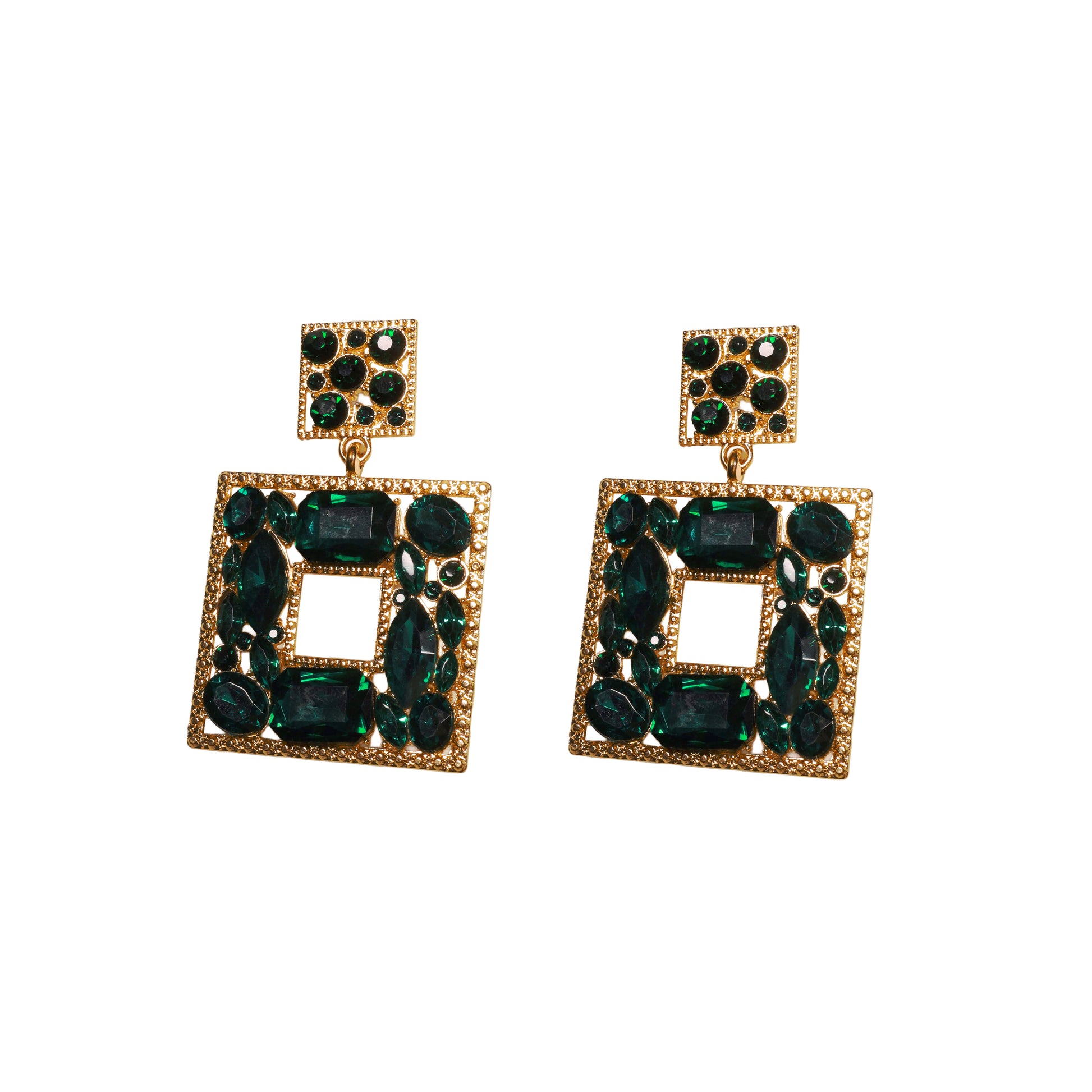 Square green rhinestone Earring